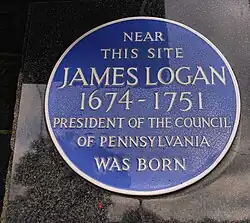 Logan was born in the town of Lurgan in County Armagh, Ireland to Ulster Scots Quakers.[1][2] He served as colonial secretary to William Penn. He was a founding trustee of the College of Philadelphia, the predecessor of the University of Pennsylvania.[3]