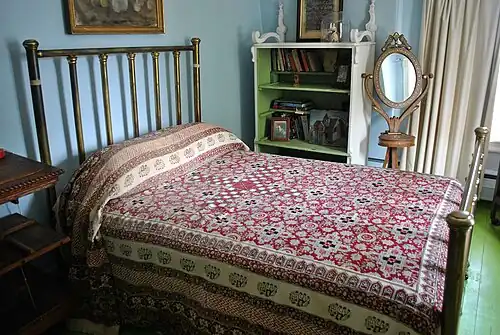 The American poet James Merrill and his partner David Jackson moved to the borough of Stonington, Connecticut, in 1954, purchasing a property at 107 Water Street.[3] It had once been a nineteenth-century residential and commercial structure that had first served as a drug store and a residence for the owner's family. Merrill spent summers in Stonington borough until his death in 1995. Village life and the apartment itself inspired some of his most important work, including The Changing Light at Sandover, his book-length epic poem based on Merrill's and Jackson's communications with the spirit world by means of a Ouija board in the turret dining room on the third floor.
