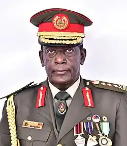 James Mugira is a lieutenant general in the Ugandan army. He is the managing director and chief executive officer of the National Enterprise Corporation (NEC), the business arm of the Uganda People's Defence Force (UPDF).[1] He was appointed to that position in April 2015.[2] He concurrently serves as the managing director of Luweero Defence Industries Limited, the small-arms manufacturer owned by the UPDF. He has served in that capacity since 2011.[3] From 2008 until 2011, at the rank of brigadier, he served as the director general of the Chieftaincy of Military Intelligence, a division of the UPDF.[4] Before that, he served as the commanding officer of the UPDF Armored Brigade, based in Masaka.[5]