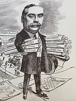 He also supported legislation to begin construction of the state's trunk highway net. Aside from the park system, the city of Minneapolis applied the Elwell Law to other public works projects through a period when the city doubled in population. The Minneapolis Star eulogized Elwell's role in creating the public financing "under which the major share of Minneapolis' expansions and improvements have been carried out for 20 years," and that "scores of projects, which have marked the development of Minneapolis and the state, bear witness to his ambition, persistence and keen intellect."[8]