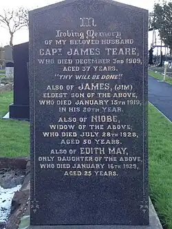 The grave of Captain James Teare, Douglas Borough Cemetery, Douglas, Isle of Man.