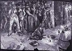 Carling was born on 31 December 1857 at 38 Addison Street, Liverpool. His parents Henry and Rose had been married in Roscommon, Ireland, his father's original surname was Carolan, anglicised to Carling following his emigration to England after being evicted during the Irish Famine. His mother's maiden name was Lynch.[1] His mother died when he was aged only 6 years. His father died 4 years after the death of his mother. From an early age James was known as the "little drawer" or "THE LITTLE CHALKER" and used Liverpool's street pavements for his art and to beg for money. He attended Holy Cross School in Fontenoy Street. After he was arrested by a policeman on Christmas Eve in 1865 and a week in a workhouse, he was sent to St George's Roman Catholic Boys Industrial School in Everton, Liverpool.[2]