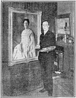 J.A.C. Goedhart with portrait of Queen Wilhelmina commissioned by city of Hulst, 1930