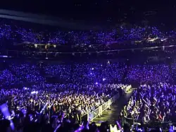 Zhang's Bang the World Tour was held to commemorate her singing career for a decade. The record company originally planned to record videos of the Beijing concert for the release of the DVD, but an accident occurred at the show: Zhang fell off from a two-meter round hollow of the elevator platform on the stage, which led to the tour's cancellation.[48] Zhang was voted the Best World Act of the Asia region in the 2015 MTV Europe Music Awards. When she went to the award ceremony, she was told to stay backstage and accept the award there. Zhang and her team considered this treatment unfair and discriminatory, so they decided to officially pull out of the award's red carpet ceremony and all other EMA activities.[49]