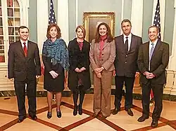 In November 2013, the U.S. State Department hosted Hinostroza, who briefed officials on "press freedom challenges." The officials "expressed concerns about the plight of journalists worldwide and reaffirmed the United States' commitment to freedom of expression."[15] Acting Assistant Secretary of State Uzra Zeya praised Hinostroza and other awardees for their "courage" and "commitment to speaking truth to power."[16]