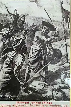 He fought against the Afghans at the Third battle of Panipat on 14 January 1761. Jankoji with around 7,000 troops was positioned to the right of Shamsher Bahadur and was opposed to Najib Khan Rohilla. When the news spread that Vishwas Rao has been shot dead, Jankoji and his uncle Tukoji on seeing the thinning crowd at the Maratha centre rushed to help Sadashiv Rao Bhau. Jankoji fought the Afghans who had penetrated into Maratha centre.