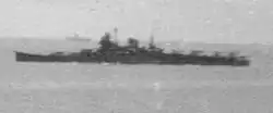 Mogami (Japanese: 最上; named after Mogami River) was the lead ship in the four-vessel Mogami class of heavy cruisers in the Imperial Japanese Navy. The Mogami-class ships were constructed as "light cruisers" (per the London Naval Treaty) with five triple 155-millimetre (6.1 in) dual purpose guns. They were exceptionally large for light cruisers, and the barbettes for the main battery were designed for quick refitting with twin 8-inch (203 mm) guns. In 1937 all four ships were "converted" to heavy cruisers in this fashion.[3] Mogami served in numerous combat engagements in World War II, until she was sunk at the Battle of Leyte Gulf in October 1944.