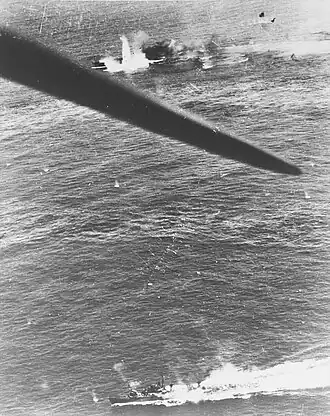 Kuwa under air attacks during the battle of Leyte Gulf, 25 October 1944