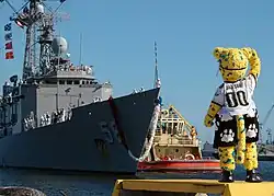 Jaxson de Ville salutes sailors aboard USS Samuel B. Roberts, September 2007.