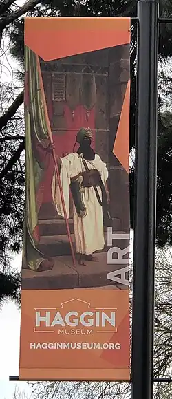Banner for the Haggin Museum in Stockton, California, using detail from Gérôme's The Standing Bearer, Unfolding the Holy Flag (1876)