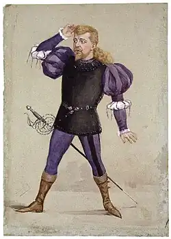 In January 1874, Reszke made his debut in Venice undertaking the baritone part of Alfonso in a production of Donizetti's La favorite.[1][5] To appeal to his audience, he was billed as Giovanni de Reschi, an Italianised version of his name.[7] He sang opposite his sister Josephine at Teatro Malibran.[7] In April 1874, he sang for the first time in London, performing at the Theatre Royal, Drury Lane, and on 11 October 1876 in Paris in La forza del Destino.[5][6] His name was established[3] or billed correctly as Jean de Reszke beginning with this Paris performance.[6][9] He performed in other operas as a baritone, such as Figaro in The Barber of Seville and Valentin in Faust. His voice was compared to that of Enrico Caruso.[3]