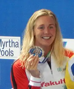 Jeanette Ottesen (born 30 December 1987)[2] is a Danish competitive swimmer who participated at the 2004, 2008, 2012, 2016 and 2020 Summer Olympics. In total, she has won 50 international medals.