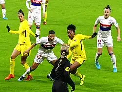 With PSG she played 19 of the 22 league games, 17 of them as a starter, and scored 6 goals.[43] She was also PSG's assist leader with 7.[40] PSG finished second in Division 1 that season, securing a spot in the 2018–19 UEFA Women's Champions League, and also won the 2017–2018 Coupe de France.