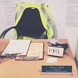In 2015, Odell was artist-in-residence at Recology SF, otherwise known as the San Francisco dump. The residency culminated in an exhibition of her work: The Bureau of Suspended Objects, a detailed archive of objects scavenged and selected at the dump. Odell conducted in-depth research into the manufacturing, distribution, popularity, and use of each object. Much of her art exists within and pulls from the Internet; this is no exception. The archive is accessible online and much of the content is pulled from the internet, such as Google street views of manufacturing plants and videos of commercials for products. The detailed history is meant to bring attention to resources involved in both the products' production and consumption.[16][17]