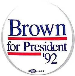 18. ^ a b c Rosenbaum, David E. (July 13, 1992). "THE DEMOCRATS; Brown Offers No Support, Just Attacks". The New York Times. Retrieved September 16, 2024.