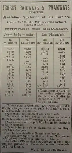 - ^ "St. Aubin's and La Moye Railway". Jersey Independent and Daily Telegraph. Jersey. 16 August 1873. Retrieved 18 March 2024 – via British Newspaper Archive.