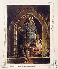 Jerusalem: The Emanation of the Giant Albion (1804–1820, with additions made even later) is a prophetic book by English poet William Blake. Jerusalem is the last, longest and greatest in scope of Blake's works. Etched in handwriting, accompanied by small sketches, marginal figures and huge full-plate illustrations, it has been described as "visionary theatre". The poet himself believed it was his masterpiece and it has been said that "of all Blake's illuminated epics, this is by far the most public and accessible".[2] Nonetheless, only six copies were printed in Blake's lifetime and the book, like all of Blake's prophetic works, was all but ignored by his contemporaries.