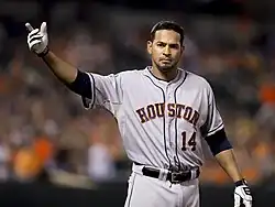 On December 18, 2013, Guzmán was traded to the Houston Astros in exchange for Ryan Jackson.[6] He appeared in 69 games for the Astros, primarily at first base, and hit .188 with a .520 OPS. On October 9, 2014, Guzmán was removed from the 40–man roster and sent outright to the Triple–A Oklahoma City RedHawks.[7] He elected free agency the following day.