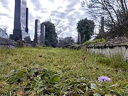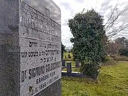 The Jewish Cemetery of Vukovar (known also as the New Jewish Cemetery) is a cemetery with approximately 75 to 100 remaining monuments which was used between 1850 and 1948.[1] The oldest tombstone dates back to 1858 with multiple languages used in inscriptions including Hebrew, Hungarian, German and Croatian.[1] The Ceremonial Hall or Zidduk-hadin (built between 1926 and 1928) was designed by Fran Funtak in Art-Deco and Moorish revival style.[2] The first Jewish Cemetery in Vukovar was established in 1830.[3]