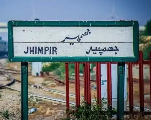 Jhimpir Railway Station (Urdu: جھمپیر ریلوے اسٹیشن, Sindhi: جهمپير ريلوي اسٽيشن) is located at Jhimpir village, Thatta district of Sindh province, Pakistan.[1] It is 114 km (71 mi) from Karachi. Jhimpir Wind Power Plant is Pakistan's first wind power plant.