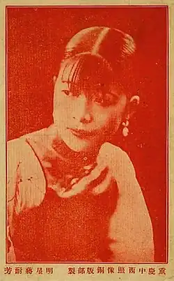 Chinese actress Jiang Naifang (蒋耐芳) from a postcard made while she was making movies (between 1925 and 1932).