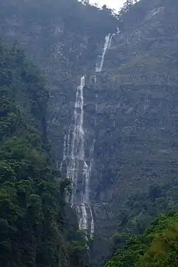 Jiao Lung Waterfall (Chinese: 蛟龍瀑布; pinyin: Jiāolóng Pùbù; Wade–Giles: Chiao1-lung2 P'u4-pu4; Pe̍h-ōe-jī: Kau-liông pho̍k-pò͘) is the tallest measured waterfall in Taiwan, with a sheer plunge of 600 metres (2,000 ft). It is located on a cliff of Mount Da Ta in Alishan Township, Chiayi County. Its closest settlement is the small hamlet of Fengshan (豐山村). Predominantly seasonal, it has been known to have much reduced flow just several days after rain.[2][3]