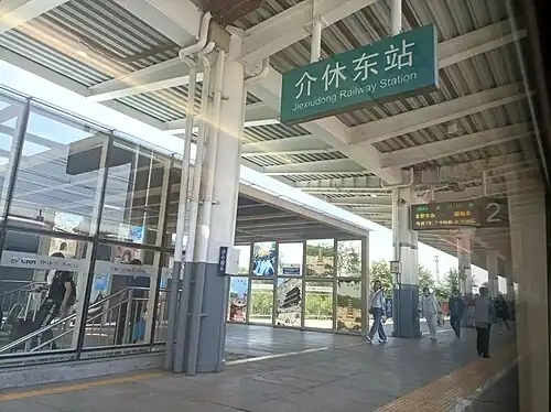 The Jiexiu East railway station (Chinese: 介休东站) is a railway station of Datong–Xi'an Passenger Railway that is located in Jiexiu, Shanxi, China. It started operation on 1 July 2014, along with the Railway.