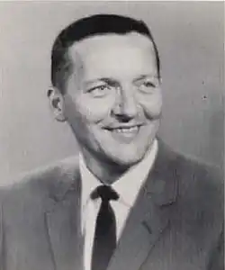 After Idaho's successful 20–6 season in 1963 with Gus Johnson at center, head coach Joe Cipriano departed for Nebraska, and athletic director Skip Stahley hired Goddard in April.[1] He led the Vandals for the first three seasons of the six-team Big Sky Conference, then unexpectedly resigned in August 1966 for an administrative position at the Oregon department of education in Salem.[6][7] He was succeeded by alumnus Wayne Anderson, a longtime assistant and head baseball coach.[8][9]