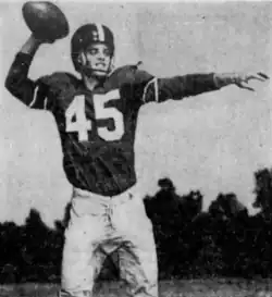At the end of the 1951 season, Cole received an honorable mention on the 1951 Little All-America college football team.[6] He missed the 1952 season due to a leg injury,[7] and while injured, Memphis State won only two games while losing seven.[8] Cole attempted to return to the team in 1953, saying that "if [his legs] stood up under the strain, all right. If they didn't he'd have to call it quits."[8] He made the team and became one of their top players, being one of their "big threats."[8] His best career game came against Mississippi Southern on October 31 that season,[4] when he played a key role in helping Memphis State pull off the 27–13 upset.[9] In each of three successive plays in the match, Cole blocked a field goal to keep the score a 13–13 tie, returned a kickoff 77-yards for a touchdown, and kicked the extra point to put the team up 20–13.[9] He was carried off the field by his teammates after the game ended.[9] Following the 1953 season, where he helped Memphis State compile a 6–4 record, Cole received honorable mention on the 1953 Little All-America college football team.[10] He played one more season at Memphis State in 1954, and helped them go 3–4–3, being named their "best tackler" at the end of the year.[11]