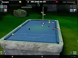 A game of blackball played on the Stonehenge table.