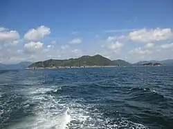 Jin Island and Bay Islet (right), viewed from the southeast.