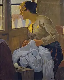 In 1886, he presented his painting, “At dawn” at an exhibition of the Paris Salon and in 1887 he presented his canvas painting, “migrants” for the exhibition of fine arts. Together with his painting, “The first tooth,” presented in 1889 at the Extraordinary Fine Arts, form the group of paintings that are most characteristic of the first stage of Joan Llimona.[3]