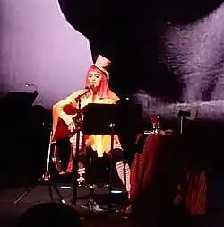 Madonna performed "Joan of Arc" in an acoustic version for the first time during her week on The Ellen DeGeneres Show on March 18, 2015. Madonna was dressed in a sequined heart blouse,[32] with the performed track being "slightly slower than the studio version, while parts of the song [had a minimal production]".[33] Mike Wass of Idolator praised the performance, calling it "a little too good to be true — but it's nice to see Madonna showing her softer side".[32] Digital Journal reviewer Markos Papadatos wrote that it was "an outstanding vocal performance", where Madonna "showcased tremendous control over her voice, and allows the lyrics to speak for themselves. Her delivery is emotional, vulnerable yet delicate."[34] Writing for The Inquisitr, Daryl Deino praised her vocal performance, saying that she "showed the world once again just what her voice is made of", calling the version "beautiful".[35] Furthermore, Bradley Stern of MuuMuse also applauded the performance, calling "[r]eally great. Super vulnerable, super emotional...and that chilly guitar finish was a wonderful surprise".[36] Madonna also added the song to the set list of her Tears of a Clown free concert in Australia—an intimate show where the singer combined a mix of acoustic music, comedy and storytelling.[37] It was considered a "gorgeous ballad" by Cameron Adams of News.com.au website.[38]