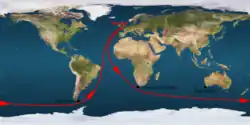 On 28 May 2019, Pajkowska completed solo, not assisted, and non-stop circumnavigation, on board an aluminium boat s/y Fanfan (40 ft). She started from Plymouth on 23 September 2018. The route included traversing Cape of Good Hope, Cape Leeuwin and Cape Horn, and finish back in Plymouth. The trip took 216 days and 16 hours, and she sailed 29 000 nm. Pajkowska is the first and only Polish female sailor to complete such a trip.[11] For her solo 360 nonstop circumnavigation, Pajkowska was awarded for the third time the First Prize and Silver Sextant, in the Rejs Roku (Sailor of the Year) competition. She is the only Polish yachtperson who received this precious award three times.[12][13] For this outstanding achievement she was also awarded the Trans-Ocean Prize, the most prestigious German sailing award.[14]
