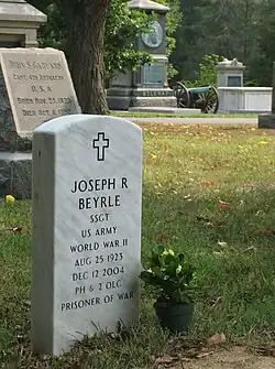 After several unsuccessful attempts, Beyrle escaped from the German Stalag III-C in January 1945 and joined a Soviet tank battalion under the command of Aleksandra Samusenko.[1] Wounded, he was evacuated and eventually made his way to the United States in April 1945. Beyrle died in 2004 and was buried at Arlington National Cemetery. His son John Beyrle later became the United States Ambassador to Russia.