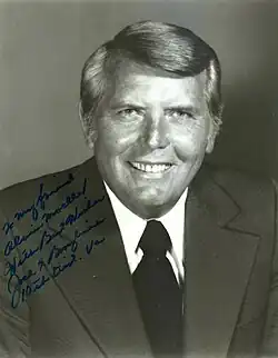 Joel Thomas Broyhill (November 4, 1919 – September 24, 2006) was an American politician aligned with the Republican Party who served as a Congressman from Virginia for 11 terms, from 1953 to 1974. He represented Virginia's 10th congressional district, consisting of suburbs of Arlington, Falls Church and sections of Fairfax County and Alexandria, and became known for his advocacy for federal workers (and constituent services) as well as his opposition to integration in the 1950s and 1960s.[1]