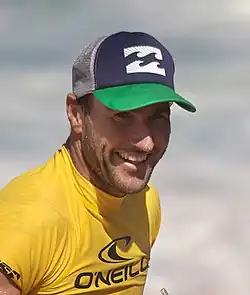 Joel Parkinson (born 10 April 1981) is an Australian surfer who competed in the World Surf League (WSL). After twelve years competing at the elite level on the ASP World Championship Tour, a stretch that saw him win eleven elite ASP World Title Events, plus nine additional ASP tour events, and achieve runner-up second place to the ASP World Title four times,[2] Parkinson won the ASP World Championship Tour Surfing Title on 14 December 2012 in Hawaii at the Banzai Pipeline during the ASP World Tours' final event for 2012–the Billabong Pipeline Masters.[3] Parkinson hung on in a back and forth battle with eleven-time ASP World Title holder, Kelly Slater, to get his first World Title, as well as go on to win the Pipeline Masters, only after Slater lost his semi-final heat to Josh Kerr, of Queensland, Australia. Parkinson beat Kerr in the finals of the event, which was his seventh top-five placing for the year, and his first event title win for 2012.[4] Parkinson left the World Tour and left a legacy of a beautiful and powerful surfing.