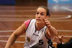 Johanna Welin was born on 24 June 1984 in Pajala, Sweden, a small town near the border between Sweden and Finland about 100 kilometres (62 mi) north of the Arctic Circle. She has played football for Töreboda IK in the Swedish league. In the winter, her passion was snowboarding, until a bad fall in a snowboarding competition at Gothenburg in January 2004 left her paralysed from the waist down.[1][2] She then took up wheelchair basketball, playing for GRBK Gothenburg in the Swedish league, but Sweden had no national women's team. She spent two semesters studying German in Innsbruck, but there was no wheelchair basketball team there, and she began playing for USC Munich, initially for their second team. There, she caught the attention of Holger Glinicki, the coach of the German national team, who asked her if she would like to play for the German national team. She took German citizenship, a relatively painless procedure for an athlete, and made the German national team, which went on to win gold at the 2011 European Championships in Nazareth, Israel, defeating the Netherlands in the final, 48–42.[2][3]