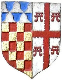 He married Gertrude Courtenay, a daughter of Sir William III Courtenay (1477–1535) "The Great",[5] of Powderham, Devon, MP for Devon in 1529, thrice Sheriff of Devon, in 1522, 1525-6, 1533-4, an Esquire of the Body to King Henry VIII, whom he accompanied to the Field of the Cloth of Gold.[6] He was 6th in descent from Hugh Courtenay, 2nd Earl of Devon (died 1377), and his own grandson William Courtenay (1527–1557) of Powderham became himself de jure 2nd Earl of Devon under the 1553 creation of that title. The arms of Courtenay quartered with Redvers appear amongst the many heraldic escutcheons shown on Chichester's monument in Pilton Church. He had by her seven sons and nine daughters,[7] who married into many of the leading gentry families of Devonshire, two of them marrying children of first cousins of Lady Jane Grey (1536/1537-1554), The Queen of Nine Days.[8] The marriages of his children are represented heraldically on a panel on his monument in Pilton Church.