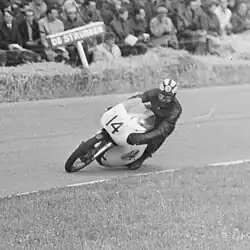 John Cooper (born 24 January 1938) is an English former professional motorcycle racer and garage proprietor. He participated in British short-circuit motorcycle road racing during the 1960s and early 1970s. He also entered selected world championship Grands Prix motorcycle races.[1] Cooper's motorcycle racing career extended over almost 20 years, mostly as a privateer rider, before experiencing his greatest achievements during the final three years of his career, most prominently at the 1971 Mallory Park Race of the Year, when he defeated the reigning 500cc world champion, Giacomo Agostini for a surprising upset victory.[2]