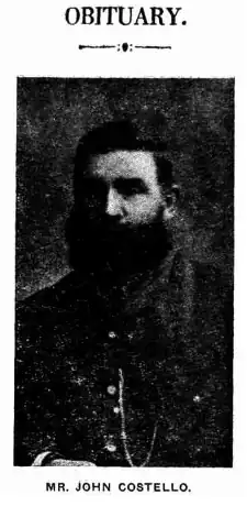 2. ^ a b c d e "Costello, John (1838–1923)". Australian Dictionary of Biography. Australian National University. 1969. Retrieved 6 October 2014.