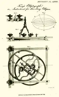 - ^ James Smith. "Farey's Elliptograph: An Instrument for drawing Ellipses," in: The Mechanic; Or, Compendium of Practical Inventions, Vol 1, 1825, p. 48-53.