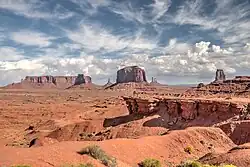 Stagecoach is significant for several reasons—it exploded industry prejudices by becoming both a critical and commercial hit, grossing over US$1 million in its first year (against a budget of just under $400,000), and its success (along with the 1939 Westerns Destry Rides Again with James Stewart and Marlene Dietrich, Cecil B. DeMille's Union Pacific with Joel McCrea, and Michael Curtiz's Dodge City with Errol Flynn), revitalized the moribund genre, showing that Westerns could be "intelligent, artful, great entertainment—and profitable".[39] It was nominated for seven Academy Awards, including Best Picture and Best Director, and won two Oscars, for Best Supporting Actor (Thomas Mitchell) and Best Score. Stagecoach became the first in the series of seven classic Ford Westerns filmed on location in Monument Valley,[40] with additional footage shot at another of Ford's favorite filming locations, the Iverson Movie Ranch in Chatsworth, Calif., where he had filmed much of Wee Willie Winkie two years earlier. Ford skillfully blended Iverson and Monument Valley to create the movie's iconic images of the American West.