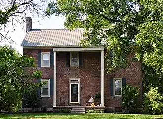 It is a two-story central passage plan house upon a limestone foundation, with a two-story portico with square posts and balustrade that was added in c.1980. It is built of five course common bond brick. A second contributing building on the property is a c.1830 single pen log outbuilding with half-dovetail notching.[3]