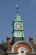 For a short time he worked with Lewis Angell, who was the District Surveyor for West Ham. They submitted a design for Stratford Town Hall (now known as Stratford Old Town Hall), beating thirty competing entries. The building was completed in 1869 and extended by Angell in 1881.[13] The building is described as a confidently Victorian version of arched Cinquecento with rusticated stone ground floor with square headed window openings beneath an upper storey of round arched windows, divided by Corinthian columns. Carried off with considerable panache with an asymmetrical 100 ft domed tower. The balustraded parapets are decorated with allegorical figures.[14]