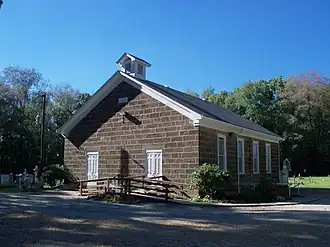 Constructed of sandstone,[1] the church was seemingly built under the direction of a local black craftsman, Frank Dunmore, who may also have been responsible for Herrington's house.[2] The church is a simple gable-front design with one door on either side of the facade, while four windows pierce the sides, and a small cupola sits atop the roofline just behind the peak of the gable. Behind the church sits the congregation's graveyard, while a woodlot lies beyond the graveyard.[3]