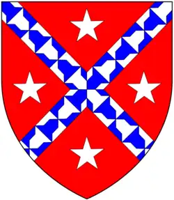 2. ^ Arms of Hill of Houndstone, Somerset (Dorset?): Gules, a saltire vair between four mullets pierced argent