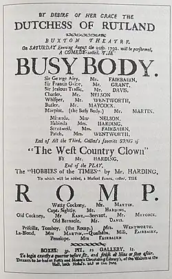 Buxton Theatre Playbill 25 August 1792