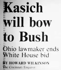 4. ^ a b "Kasich drops out of GOP race". CNN. July 14, 1999. Retrieved August 1, 2016.