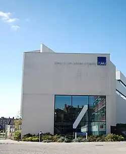 It is located at Duckinfield Street in LJMU's Mount Pleasant Campus, immediately adjacent to the Liverpool Metropolitan Cathedral. The six-storey building was constructed between 2005 and 2008 at a cost of £27 million.[1] The RIBA award winning John Lennon Art and Design Building was designed by Rick Mather Architects, during construction the contractor was Wates Construction and the structural and services engineer was Ramboll UK.[2] The building was officially renamed on the 1 July 2013 after John Lennon's widow, Yoko Ono, gave the university her blessing to use the Lennon name in recognition of her husband's links with the College of Art and the City of Liverpool.[3]